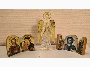 Vackra ikoner med kristna motiv - triptyk Kristus, diptyk + vintage skyddsängel.
