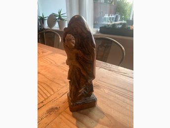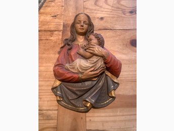 Jättefin handsnidad Träskulptur - Madonna med barn