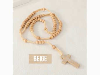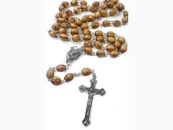 Vacker lång rosenkrans/radband av olivträd krucifix kors Jesus (NY)