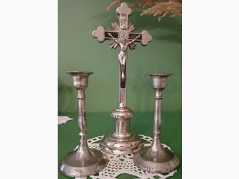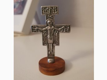 VINTAGE KRUCIFIX KORS FIGURIN I VIT METALL ASSISIS