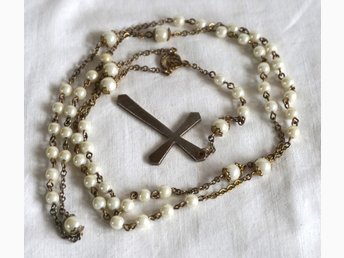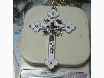NY lång rosenkrans radband/halsband krucifix kors Jesus vita runda pärlor