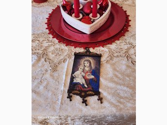 RETRO IKON MADONNA MED BARNET PÅ TRÄ PLATTA
