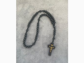 Katolsk handknuten rosenkrans/radband med svarta träkulor NYTT! kors Jesus