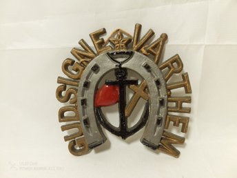 Skylt i bemålad metall, Väggplakett, Gud Signe Vårt Hem