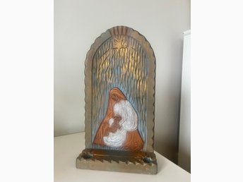 Väggljusstake - Madonna - Jesus - trä signatur ikon