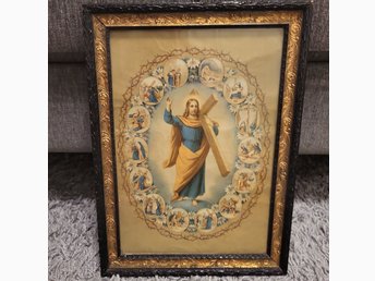 Retro Religlöstmotiv inglasad Tavla Oljetryck***