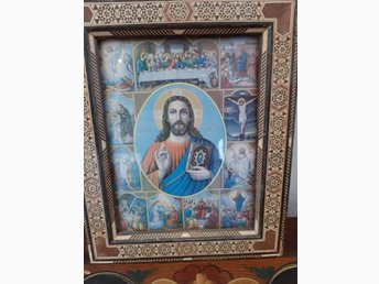 Fin äldre tavla, ikon,sign leiber, Jesus med tistel,otroligt vacker! Fynd!
