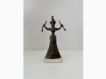 Stor Kretentiska Minoanska Ormgudinnan Staty
