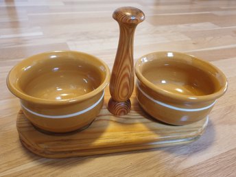 VINTAGE Ålandsslöjd Stig Johnson Keramik Skålar från FÅGELMARA Trästativ