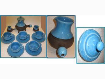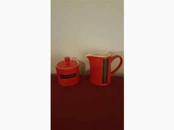 GANTOFTA TEKOMPLETT 5ST. KOPPARm.FAT + KANNAN m.sockerskål samt mjölkkanna-Ny!