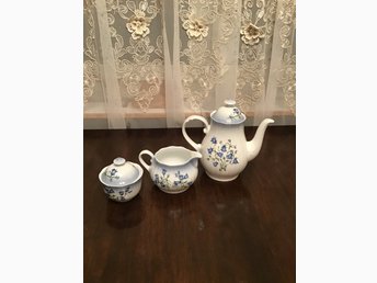 Kaffekanna+sockerskål+mjölkkanna Blåklocka Flores Caerulei Svaneholm1530,oanvänd