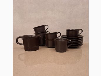 Höganäs "Party" Kaffeservis - 6 Koppar och Fat med tillbehör - Stengods - Retro