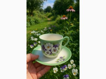 Te Kopp med fat i blomstermönster