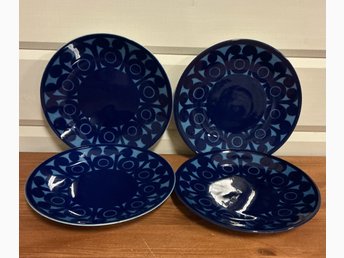 Fyra djupa tallrikar - Mariehult - Blåklint - 22 cm