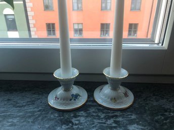Två ljusstakar från Hackefors med blommönster