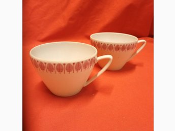 2 st Tekoppar / Koppar - Vita med Röd Dekor