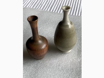 Två miniatyrvaser i keramik, signerade