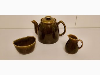 Retro Gefle,Upsala Ekeby Skimra Tekanna, Gräddkanna och Sockerskål