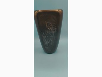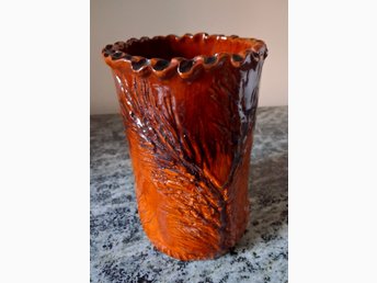 Vas med texturerad löv i terrakotta "konstkeramik"