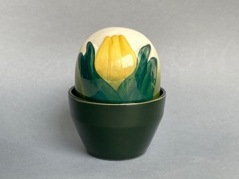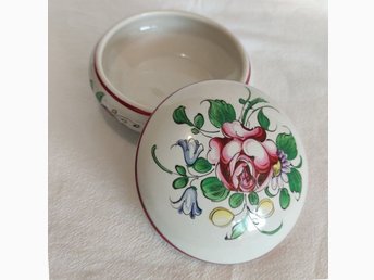 Gabriel Fourmaintraux Desvres antik prydnadslåda Frankrike 1910 handmålad fajans