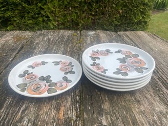 6 st ljuvliga assietter, Cottage Rose, Simpsons, England, 1950/60-tal, retro