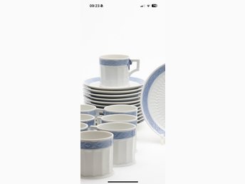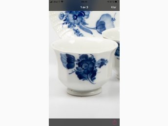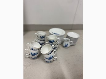 Blå vifte Royal Copenhagen 6 kaffekoppar med fat nyskick