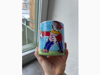 Handmålad keramikfigur 'Puppena i boet' av Heljä Liukko-Sundström 1981 Arabia
