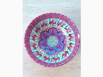 Handgjord Turkisk bohemisk färgglad lekfull skål retro alldeles underbar