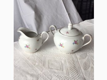 KPM Rubens kaffekanna vit porslin med blommor o guldkant kanna