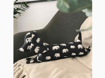 Dörrstopp tax dachshund i tyg från Svenskt Tenn, mönster Elefant