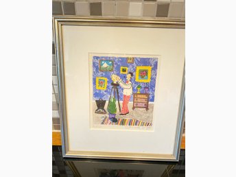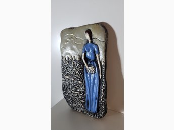 Konst Carl Stenhammar "Blå Ljungfru" Signerad Elegant Retro Väggrelieff