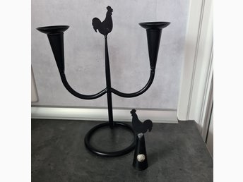 Käck & Hedbys.Leksand.Ljusstake i smide med tupp.2st ljusmanchetter & ljussläcka