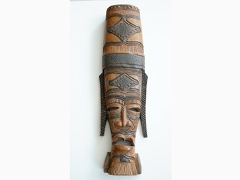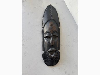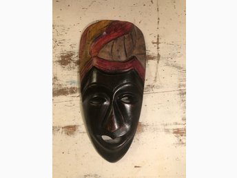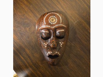 Mask av trä. Träskulptur. Retro. Vintage. Från 80-talet.