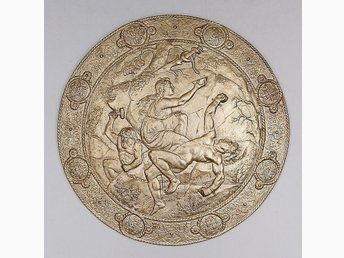 Antik Sköld från 1890 - Lokes straff - Försilvrat Gjutjärn - Graverad