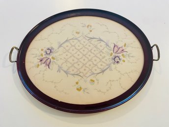 Broderad serveringsbricka med glas sent 50-tal vacker retro inredning. 55x45cm
