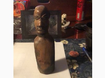 Träskulptur Afrika, tunnhårig man, med skägg