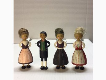 Trädockor i folkdräkt, 4 st