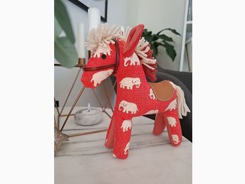 Häst i tyg från Svenskt Tenn, mönster Elefant, design Estrid Ericson