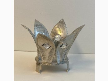 Vacker krona bordsdekoration ljuslykta värmeljus tenn bröllop bröllopspresent