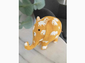 Elefant i tyg från Svenskt Tenn, mönster Celotocaulis, design Josef Frank