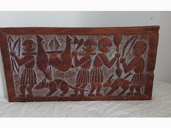 Trätavla. Tavla. Afrikansk konst. Afrika. Relief. Trärelief
