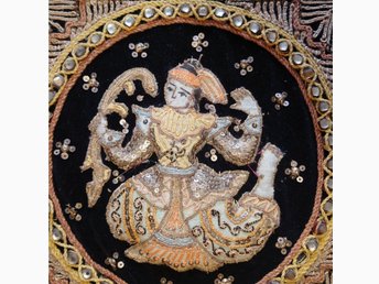 KALAGA - MYANMAR, VINTAGE VÄGG-DEKOR, INRAMAD. MKT FINT SKICK. MÅTT 41 x 41 CM.