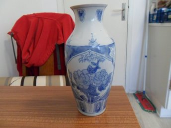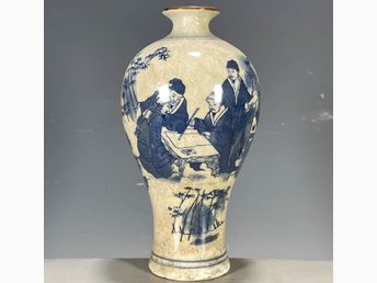 Qing Qianlong blå och vit dam bildöppningsvas, 24 cm hög