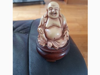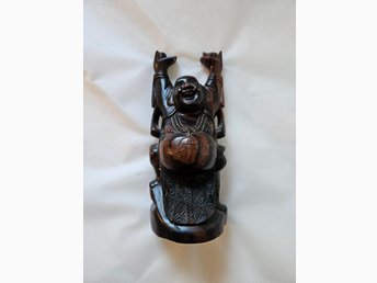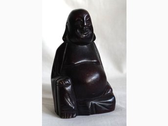 Äldre trä snidad buddhastaty höjd 13 cm.