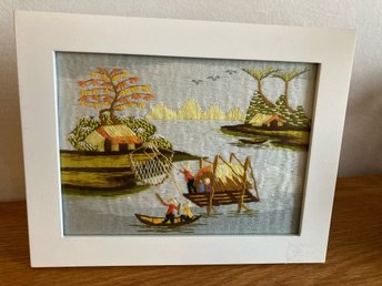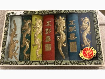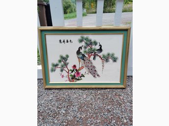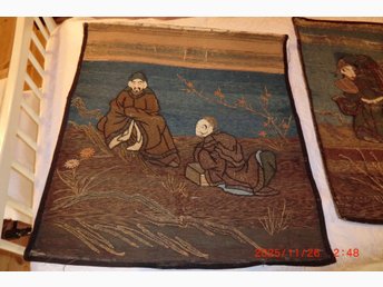 2 ST TEXTILIER KINESISKA APPLIKATIONER BRODERI TRÅDAR 70 X 64 CM