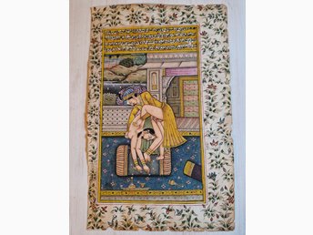 Antika tavlor från Thailand 3 st handmålade på skinn