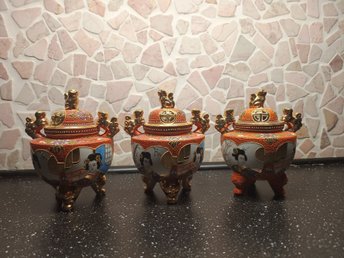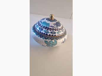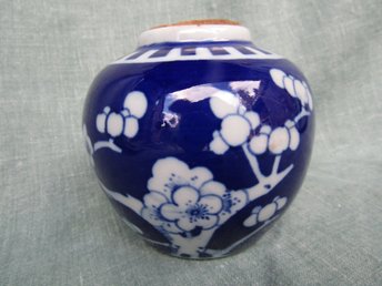 Äldre orientalisk urna kruka m kork vintage H11cm D11cm Japan Kina