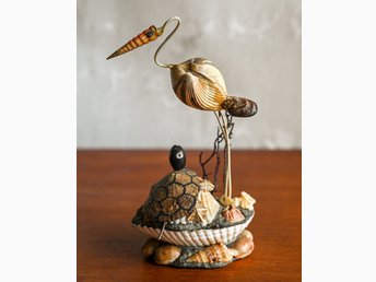 Vintage Japanese Showa Era Seashell Crane & Turtle Figurine