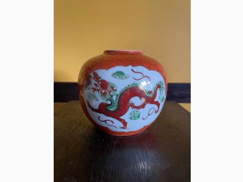 Bojan, burk/ vas med drakmotiv Kina 1900-tal med stämpel