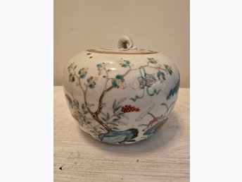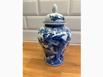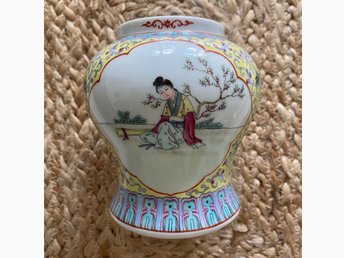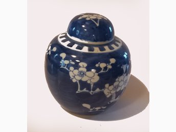 Vacker kinesisk ginger jar/porslinsburk med lock – handmålad, 1800-1900-tal?